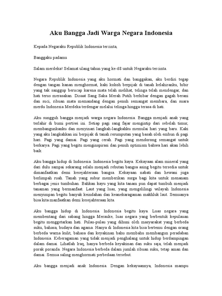 cerita i’m proud of indonesia dalam bahasa indonesia tolong …