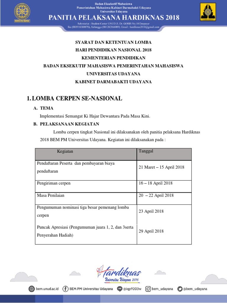 PORTAL KOMPETISI DAN BEASISWA: “Lomba Cipta CERPEN (cerita pendek) & Lomba Desain Poster” dengan tema “Kuatkan Pendidikan, Majukan Kebudayaan!”