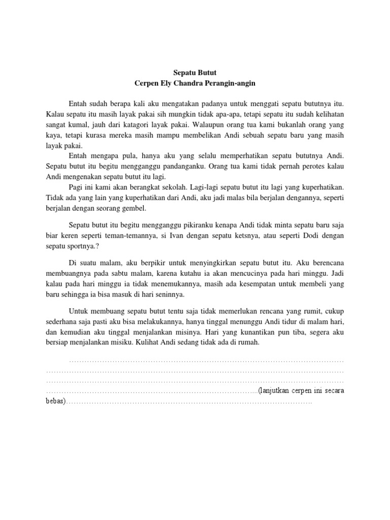 Sepatu Butut Cerpen Ely Chandra Perangin-angin