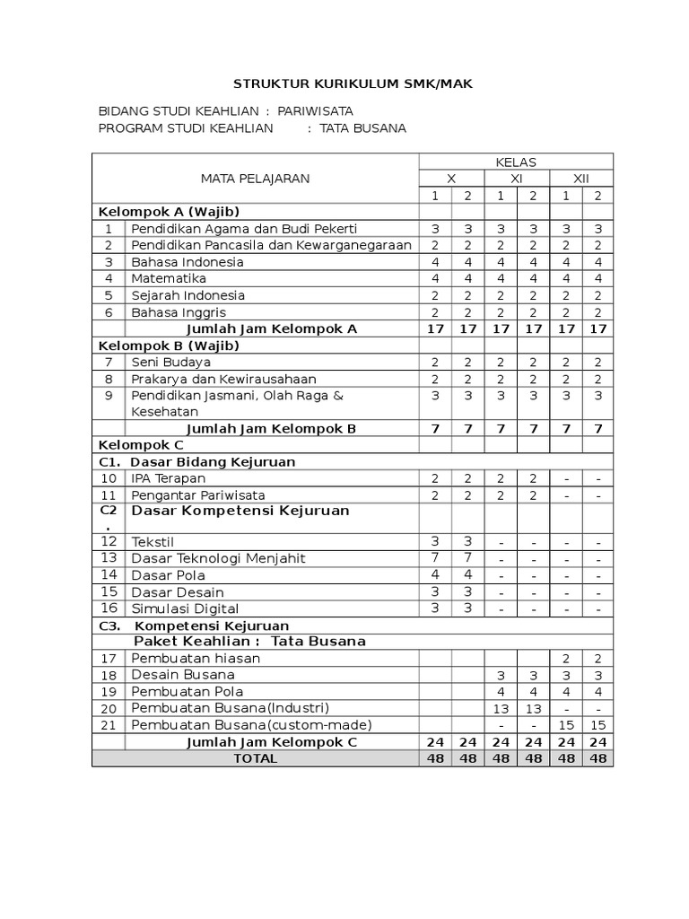 Struktur Kurikulum Ktsp Smk Busana Butik