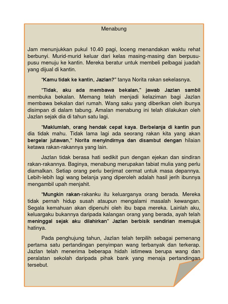 Bahasa Melayu - Cerpen Oren