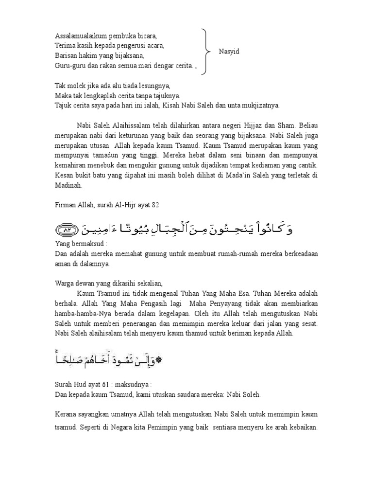 Teks Bercerita Nabi Salih