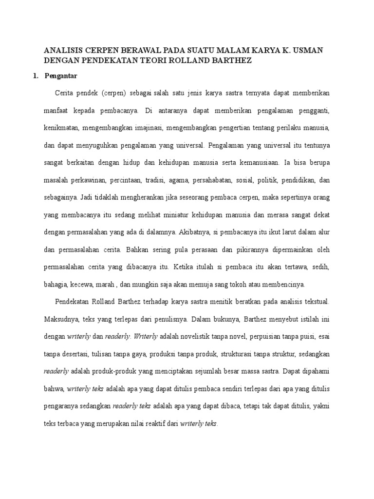 Analisis Cerpen Berawal Pada Suatu Malam Karya k