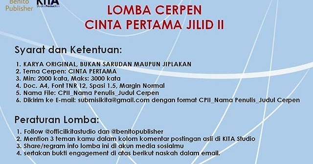KITA Studio - LOMBA CERPEN CINTA PERTAMA Jilid II Lomba… | Facebook