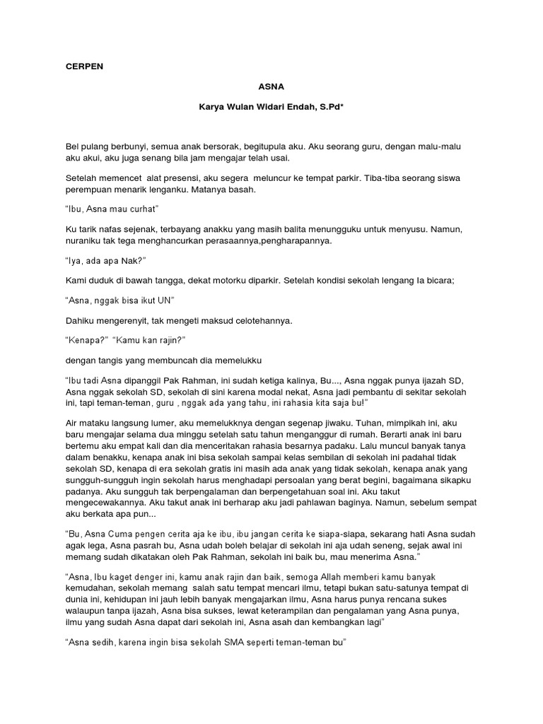 Contoh Cerpen Pendidikan Singkat Karakter Anak Bangsa
