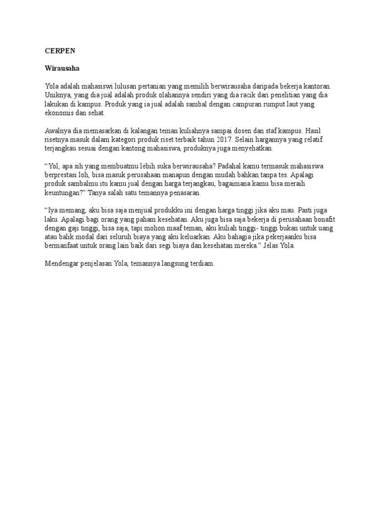 Contoh Cerpen Wirausaha Dan Unsur Intrinsiknya - Contoh 43