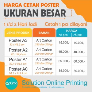 Cetak Poster ukuran A3,A2,A1,A0,B1,B2. Tersedia daftar harga …
