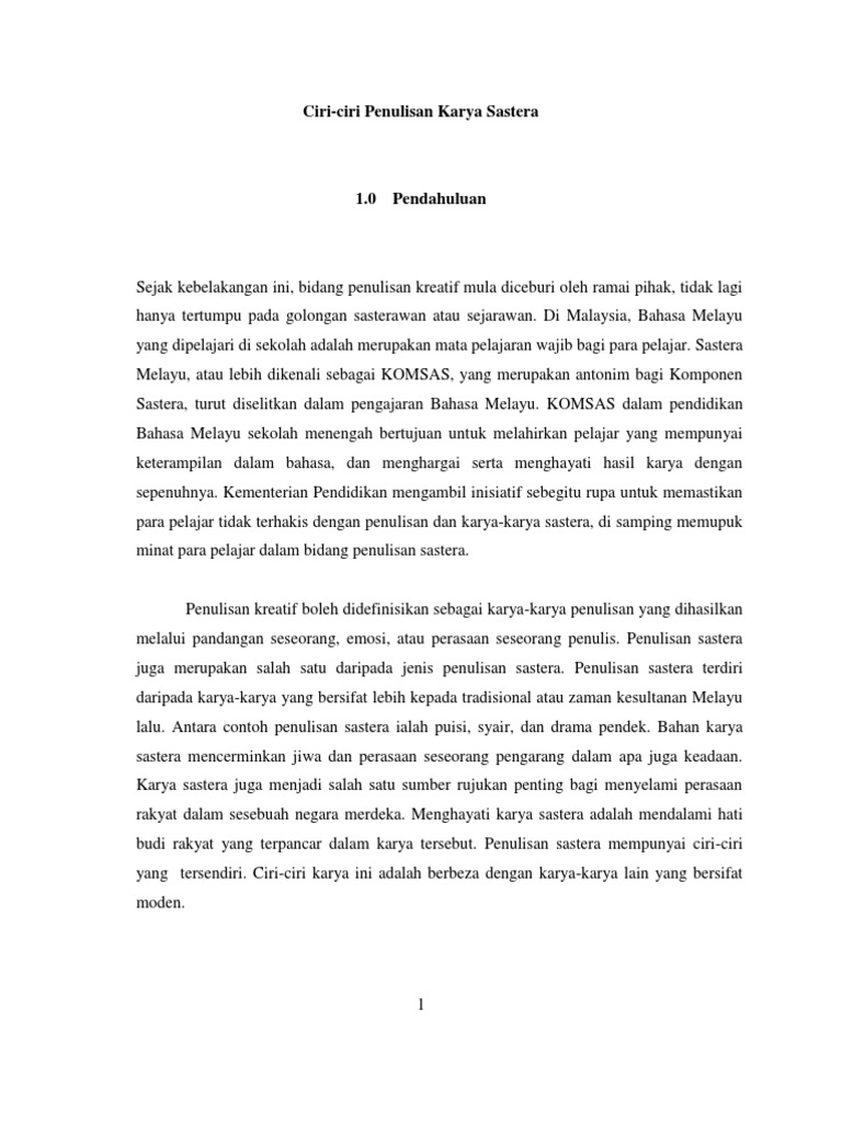 ciri-ciri karya sastera