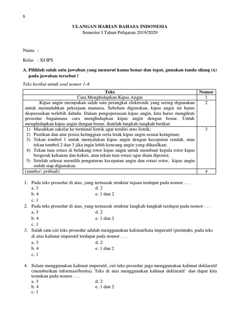 Ulangan Harian Bahasa Indonesia Teks Prosedur Kelas XI