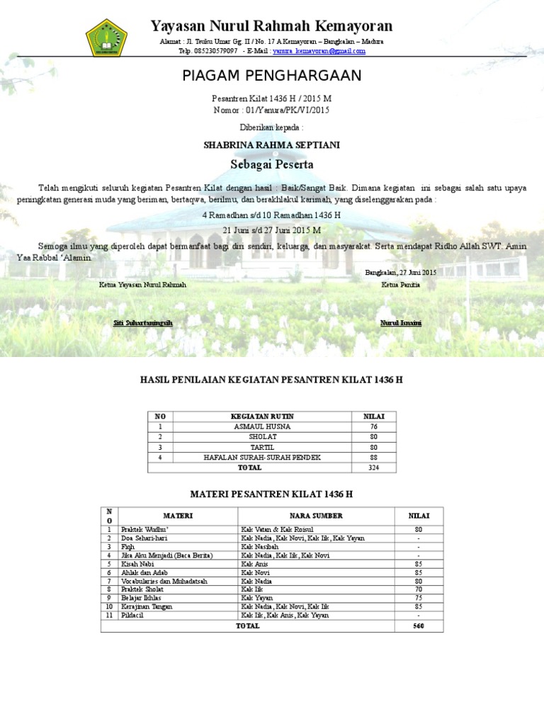 Download Contoh SK Pesantren Kilat (SANLAT) Ramadhan Terbaru Tahun 1438 H/2017M - Forum PGRI
