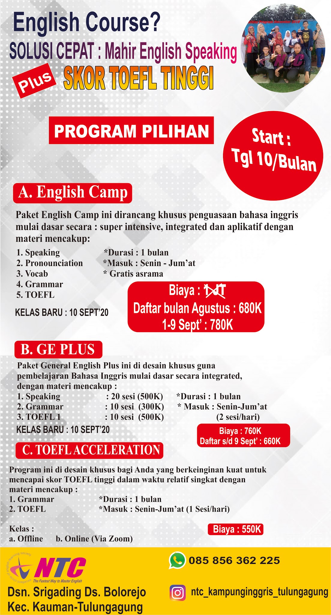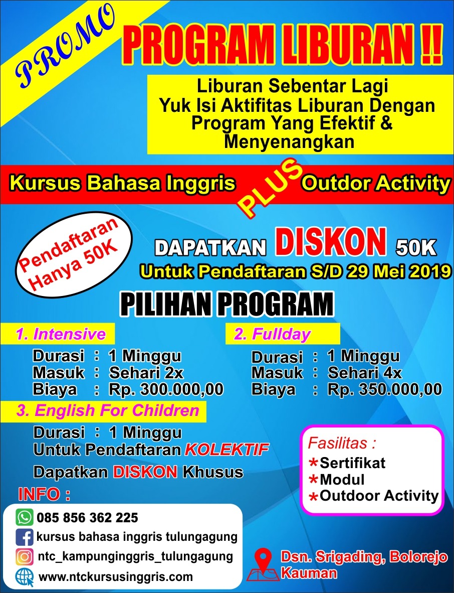 NTC Kursus Inggris: Brosur Liburan Kursus Bahasa Inggris plus Outbound
