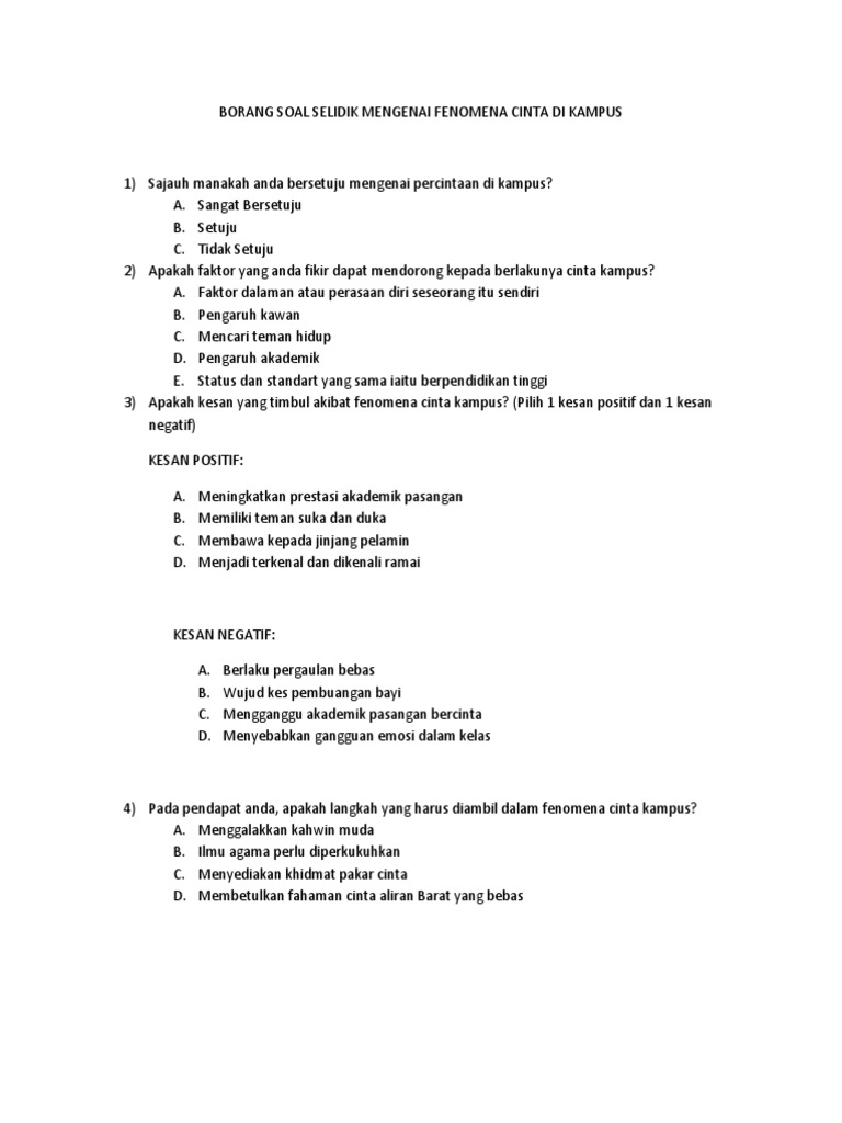 Contoh Borang Soal Selidik Pergaulan Bebas