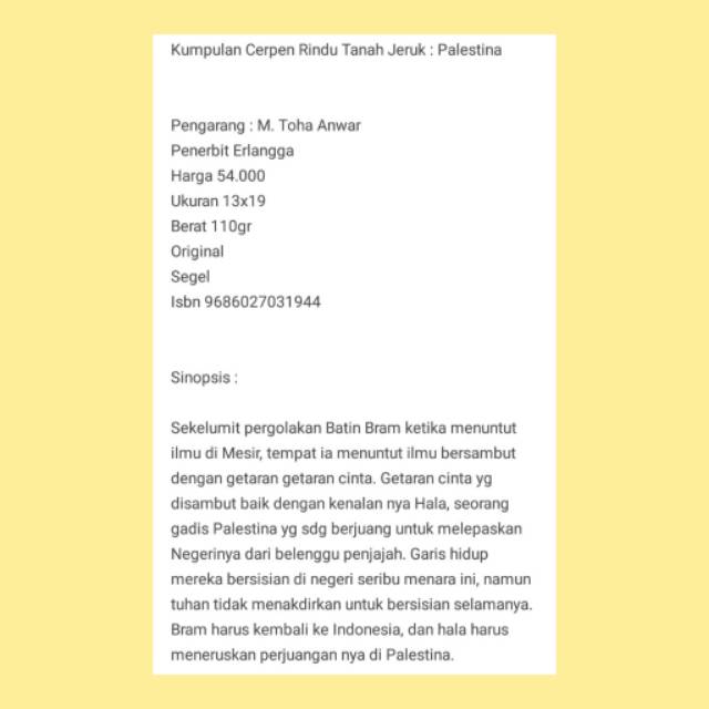 Kumpulan Cerpen Rindu Tanah Jeruk : Palestina! | Shopee Indonesia