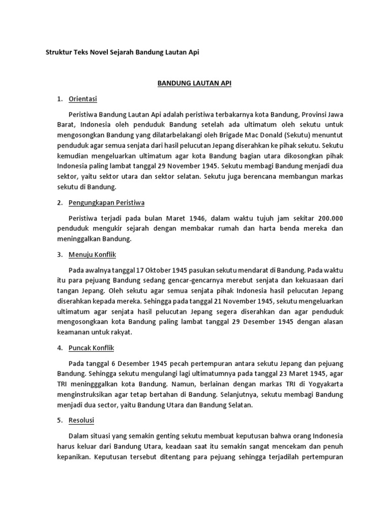Struktur Teks Novel Sejarah Bandung Lautan Api