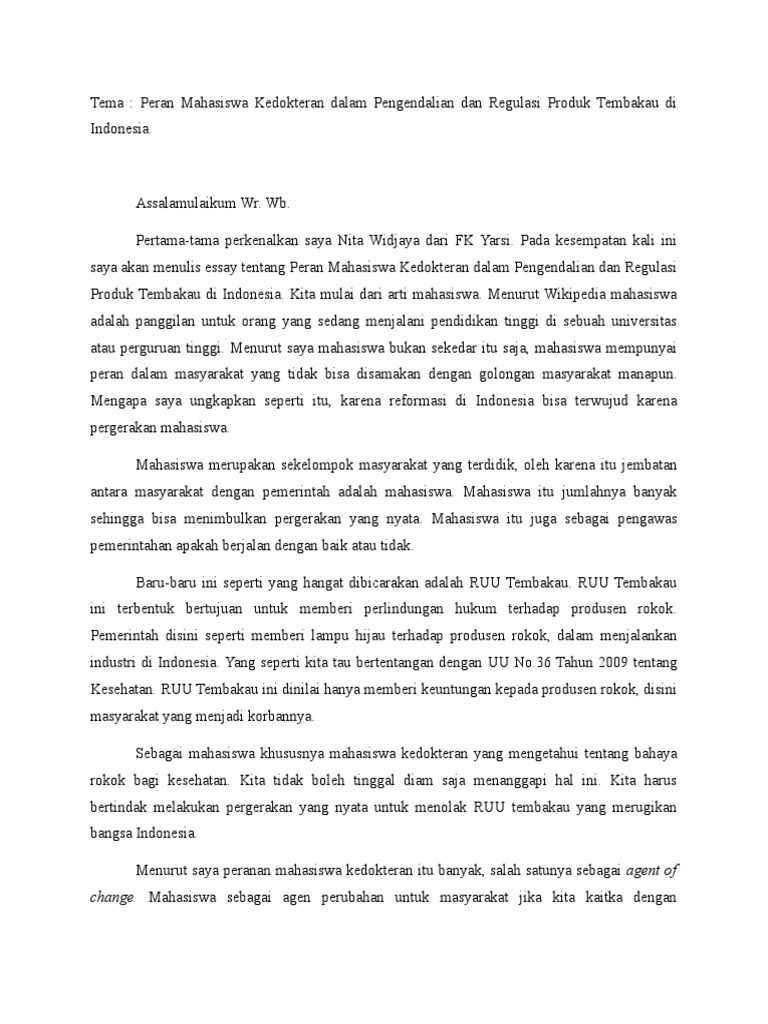 Contoh Essay Mahasiswa Kedokteran | Materi Pelajaran 5