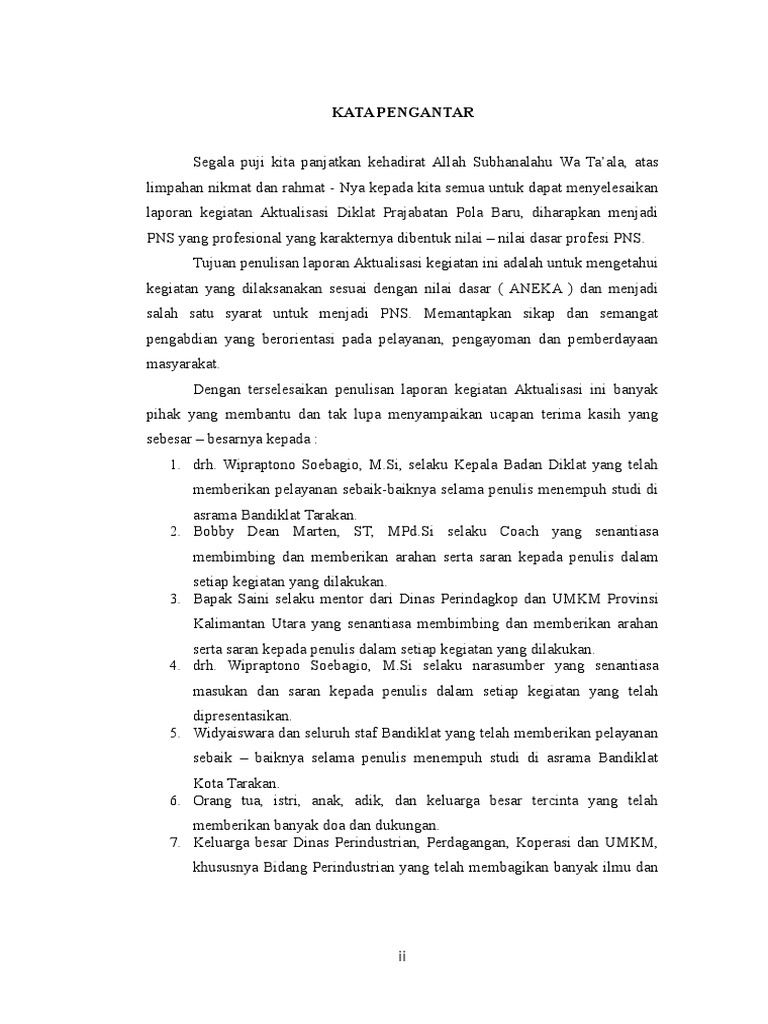 Kata Pengantar laporan aktualisasi