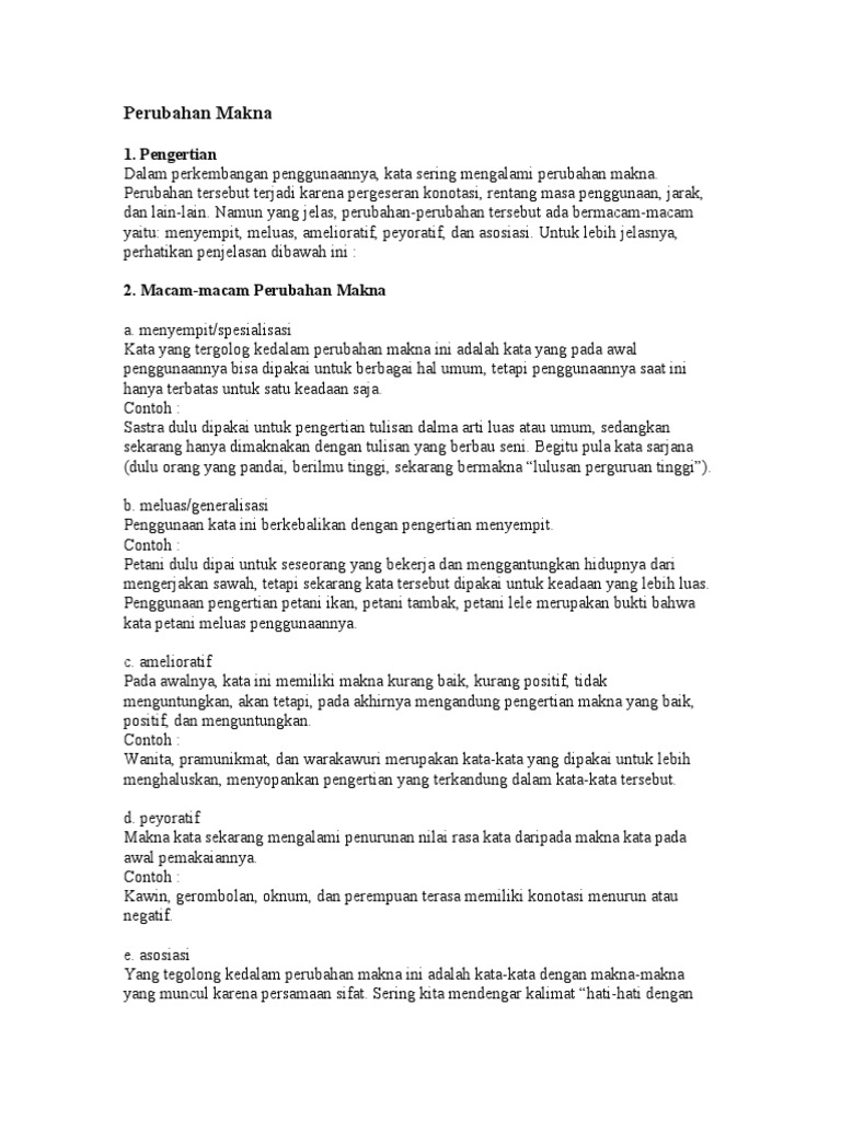 DOC) Pengertian dan Contoh Leksem Perubahan Makna | Raden Gita - Academia.edu