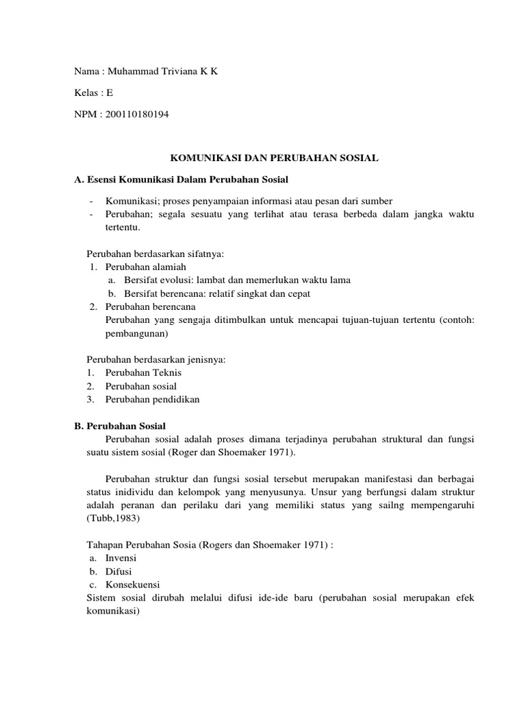 Analisis perubahan sosial - Sosiologi Politik - UI - StuDocu