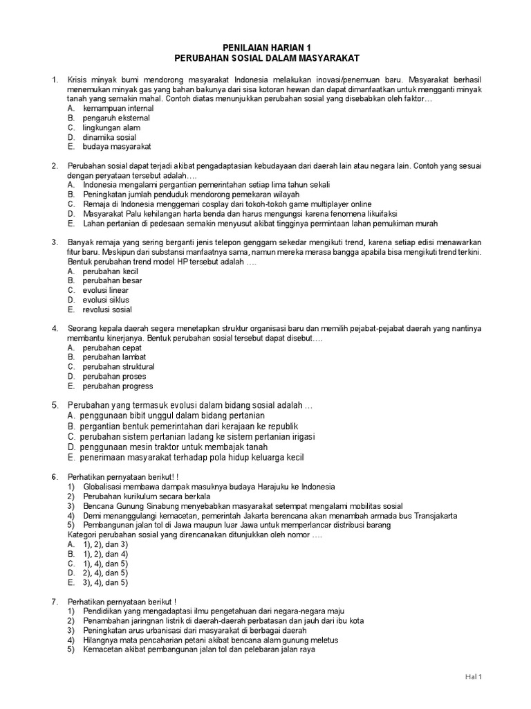 Soal Sosiologi : Perubahan Sosial dan Kunci Jawaban Lengkap Versi …