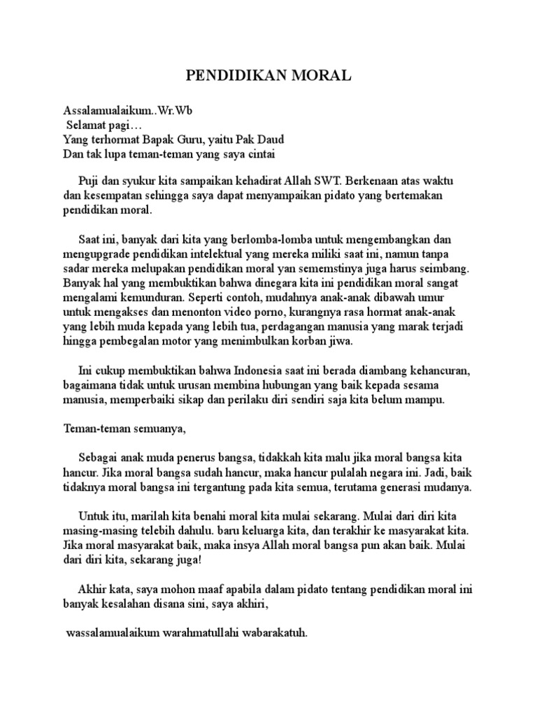 DOC) Naskah Teks Pidato Pentingnya Pendidikan Moral | CBC Syarif - Academia.edu