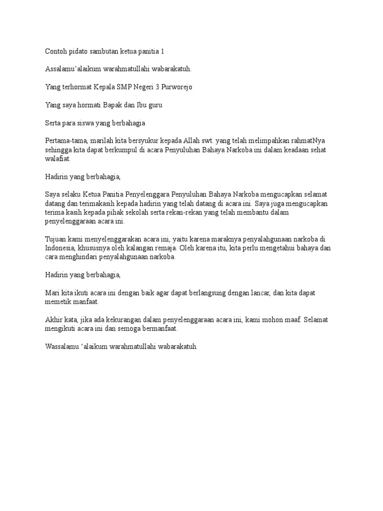 DOC) Contoh Kata Sambutan Ketua Panitia | ari bukhari - Academia.edu
