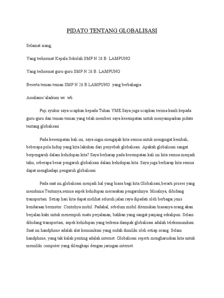DOC) Contoh Naskah Pidato Tentang Globalisasi | Wahyu Widodo - Academia.edu