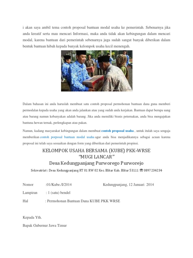 Contoh Proposal Bantuan Modal Usaha Ke Pemerintah