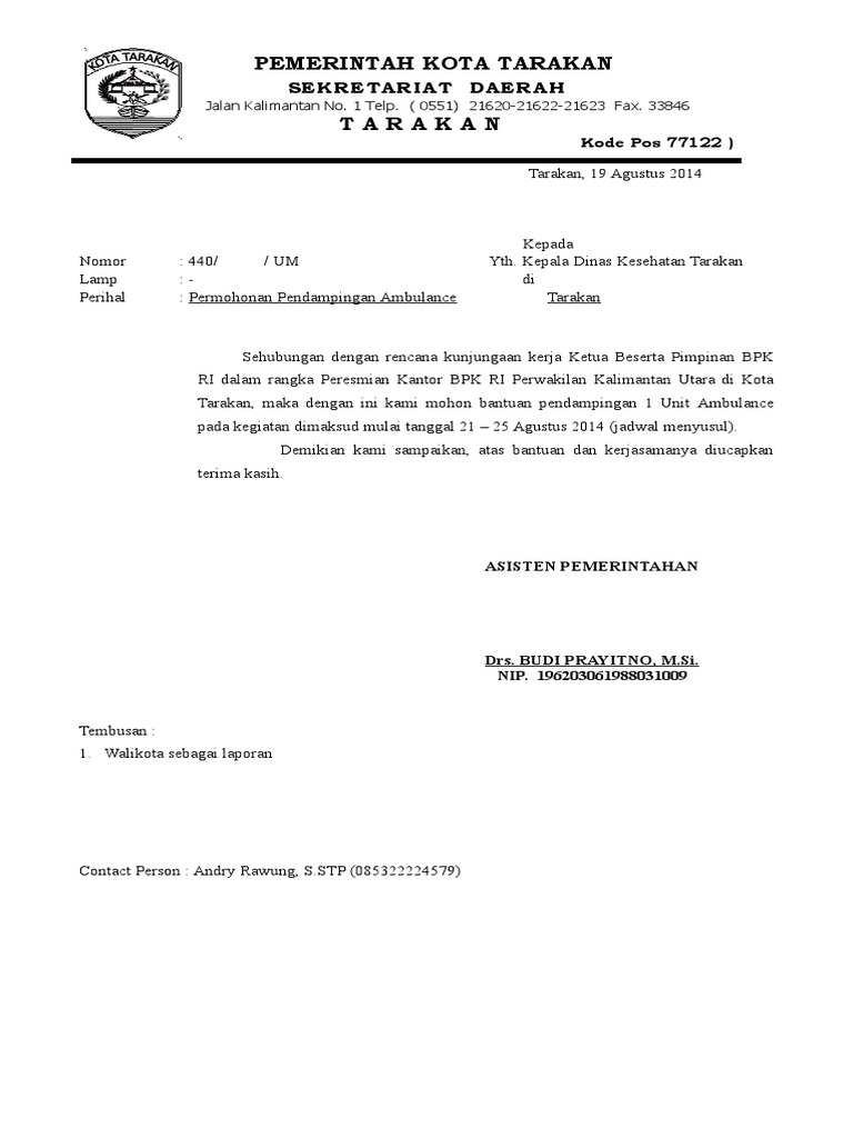 Contoh Surat Permohonan Kendaraan Dinas Operasional Roda - Cute766