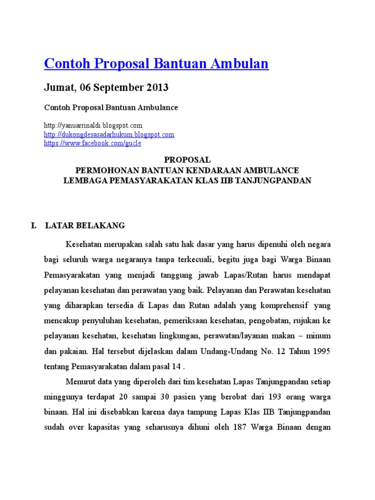 Contoh Proposal Permohonan Bantuan Mobil Ambulance - Berbagi Contoh Proposal