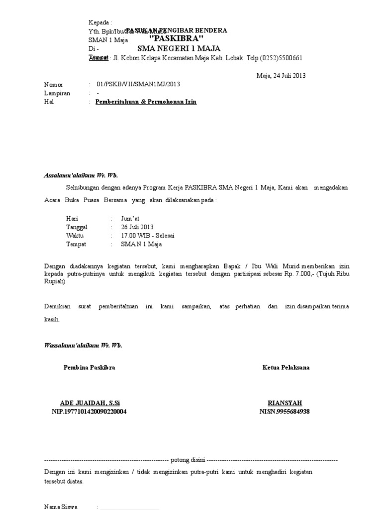 Contoh Surat Ijin Mengikuti Kegiatan diluar Sekolah | Belajar Office