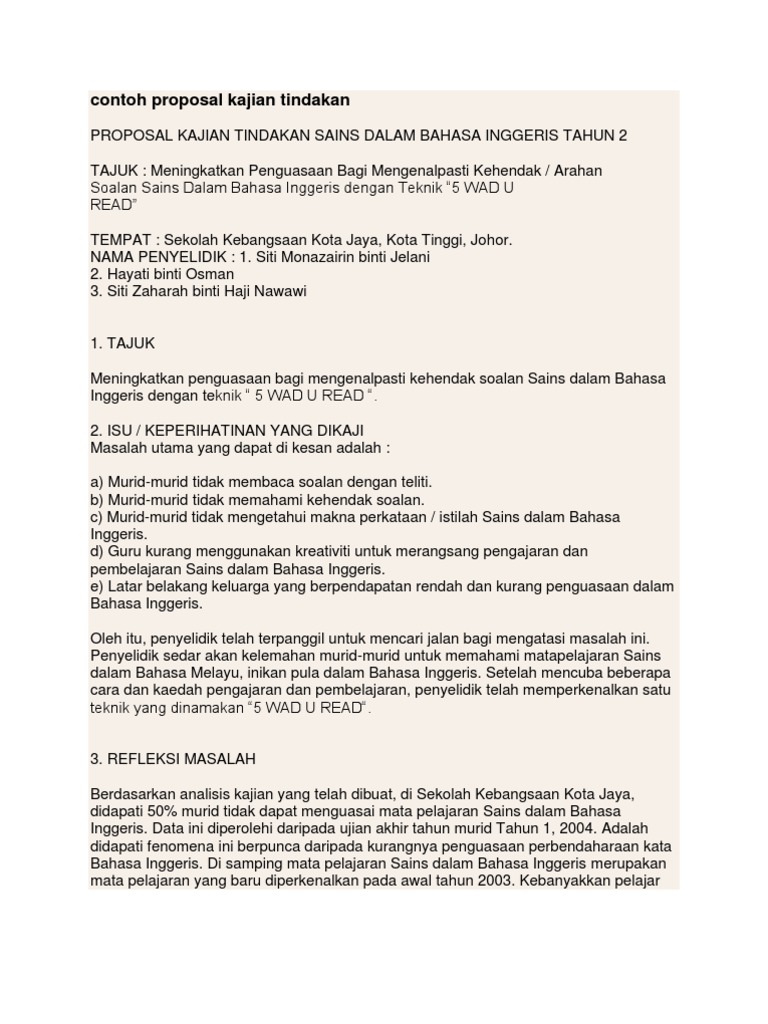 PDF) KERTAS CADANGAN (PROPOSAL) KAJIAN TINDAKAN | Ben Lau - Academia.edu