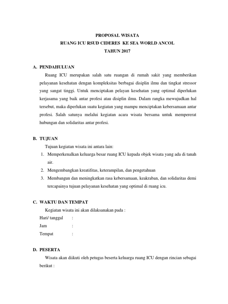 DOC) PROPOSAL WISATA WARGA KE CIATER JAWA BARAT | indun dwi astuti - Academia.edu