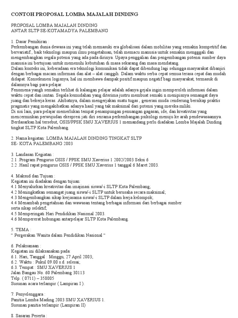 Contoh Proposal Pengajuan Dana Kegiatan Lomba Sekolah - Berbagi Contoh Proposal