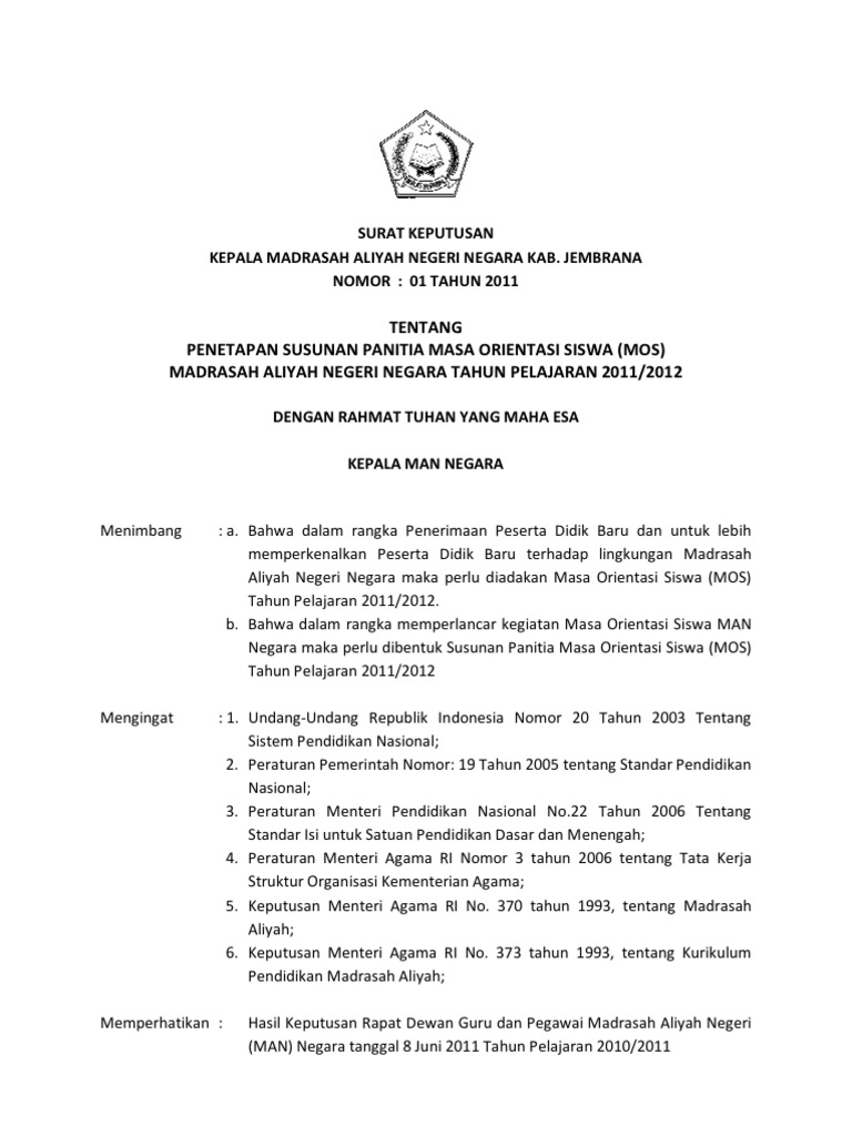 Contoh Sk Panitia Masa Orientasi Siswa Mos Terbaru Lengkap - Cute766