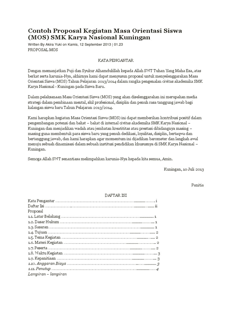 Contoh Proposal Kegiatan Masa Orientasi Siswa (MOS) SMK Karya Nasional Kuningan - Flash-Share™