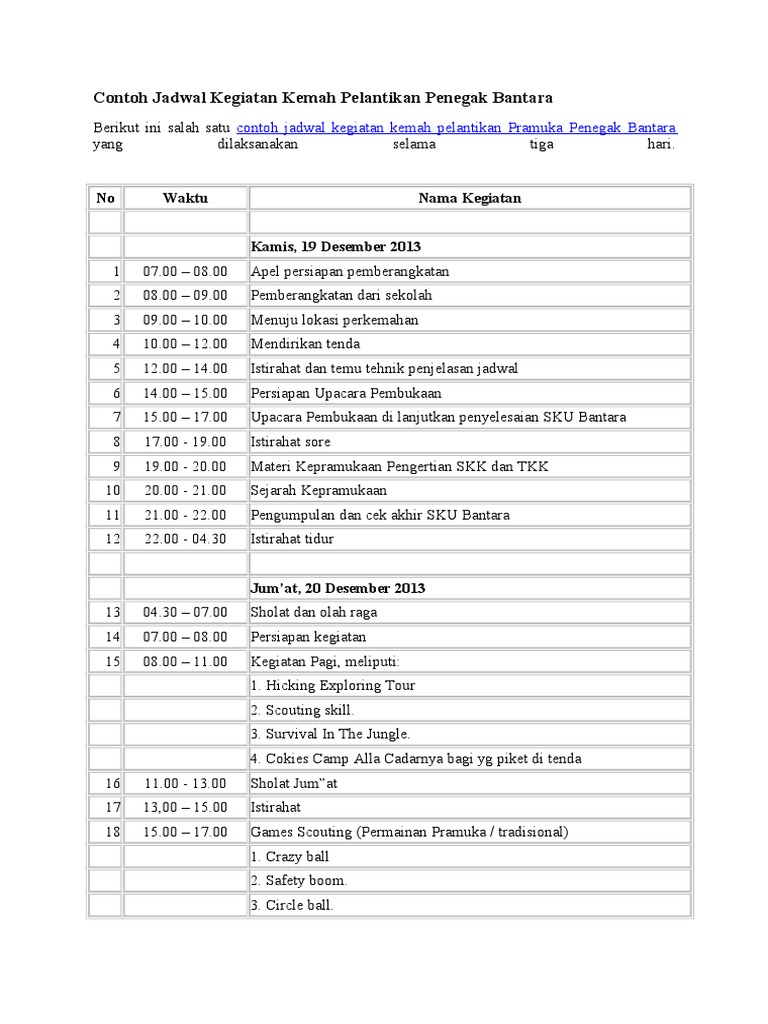 Contoh Jadwal Kegiatan Kemah Pelantikan Penegak Bantara - PDF Free …