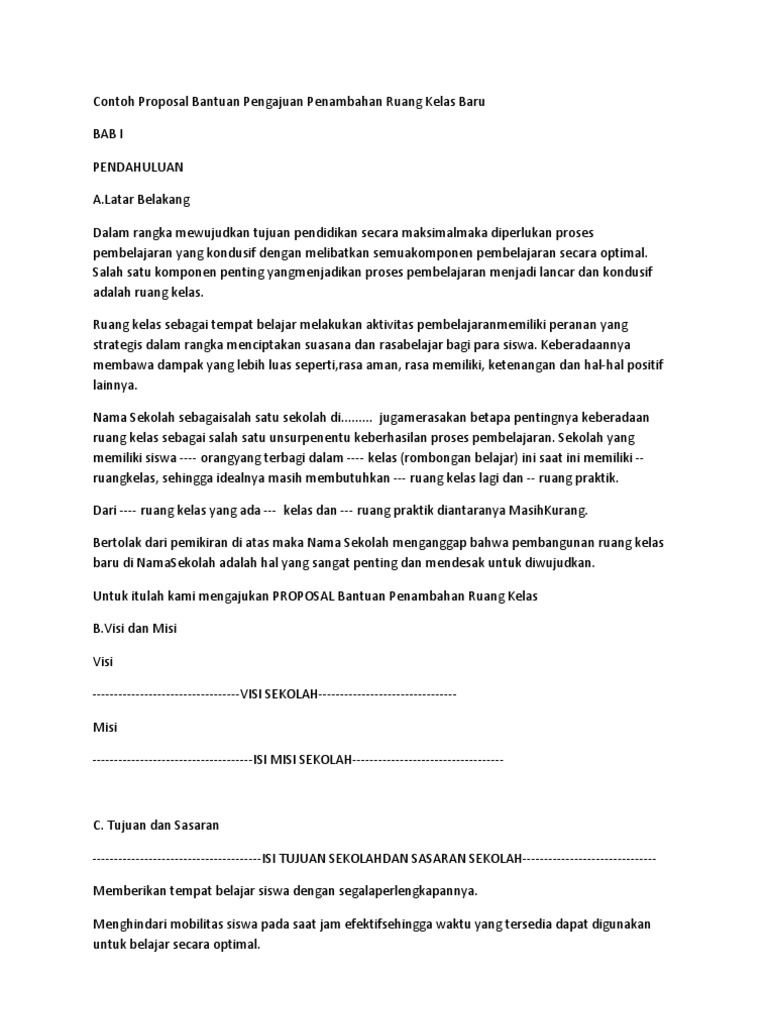 Contoh Proposal Bantuan Ruang Kelas Baru - Berbagi Contoh Proposal