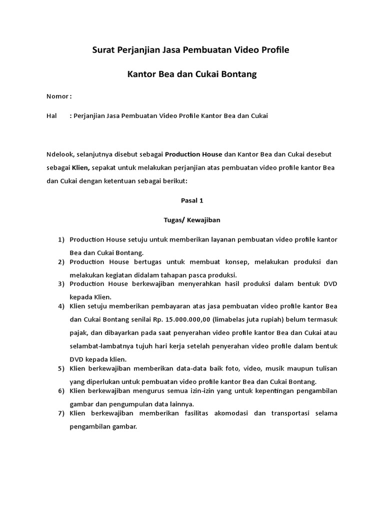 contoh Surat Perjanjian Jasa Pembuatan Video Profile