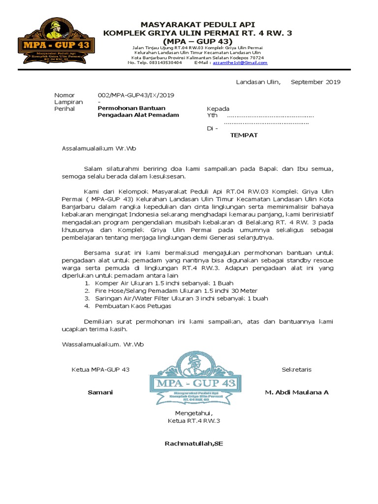 Contoh Surat Permohonan Bantuan Alat Pemadam Kebakaran - Berbagai Alat