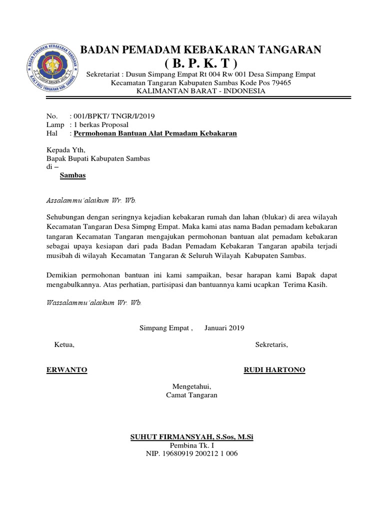 Contoh Proposal Permohonan Bantuan Alat Pemadam Kebakaran » KonsultanK3.com