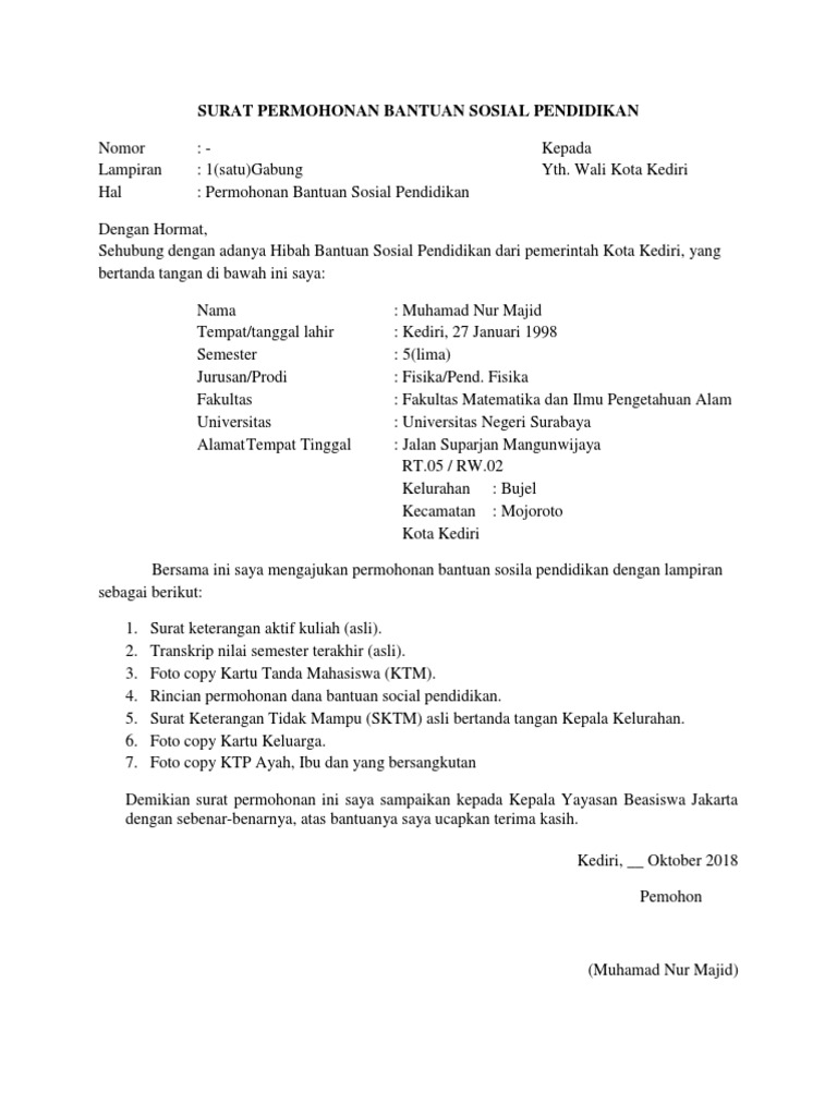 DOC) Surat Permohonan Beasiswa Pendidikan | Febri Ramadani - Academia.edu