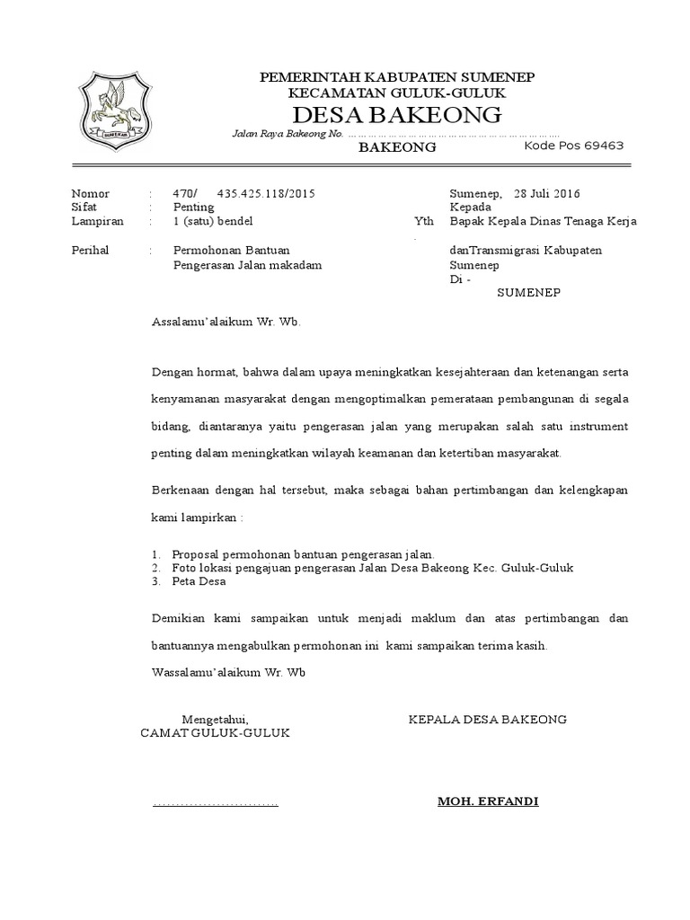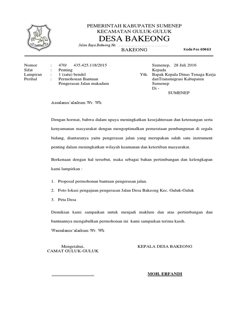Contoh Surat Permohonan Bantuan Aspal Jalan - Contoh Seputar Surat