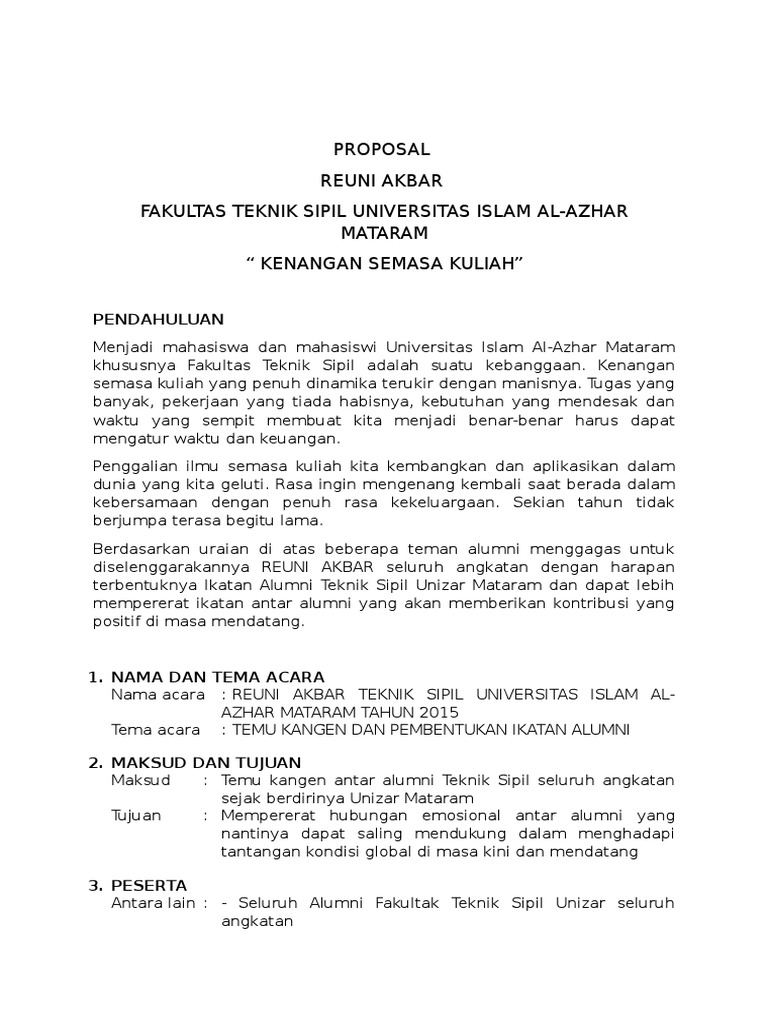 Proposal Reuni Akbar Fakultas Teknik Sipil Universitas Islam Al-Azhar Mataram “ Kenangan Semasa Kuliah”