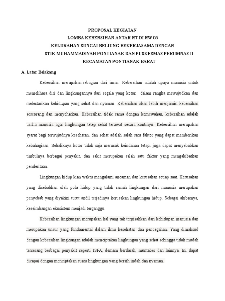 DOC) PROPOSAL KEBERSIHAN LINGKUNGAN | riyan supridi - Academia.edu