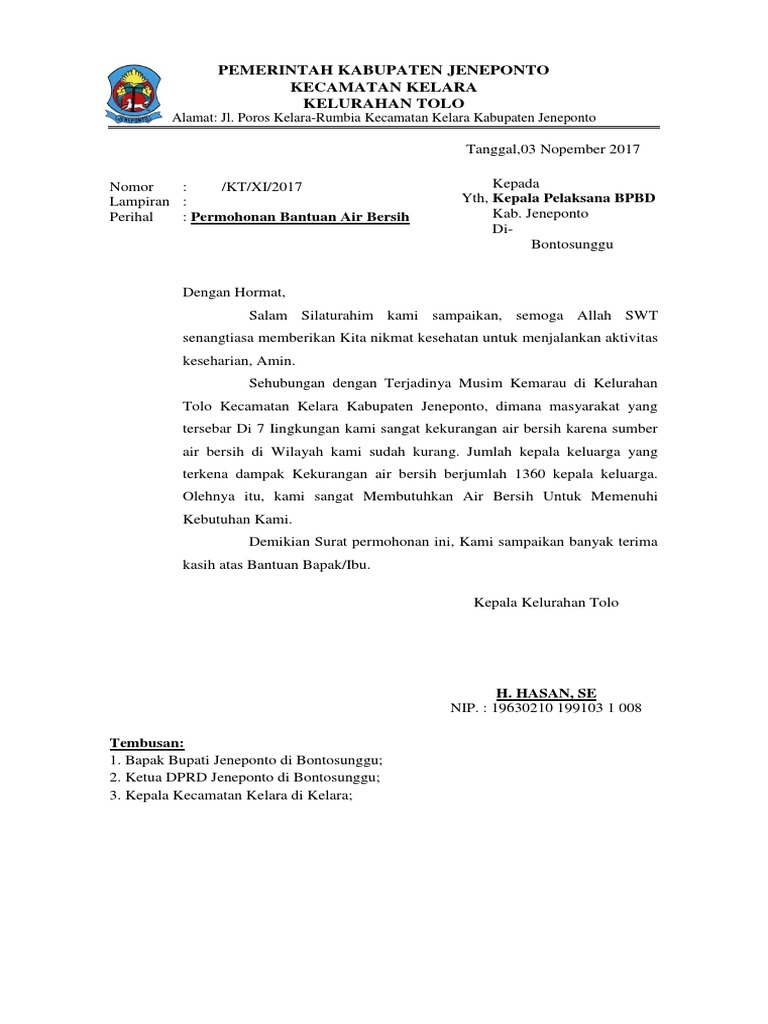 Contoh Surat Permohonan Bantuan Air Bersih Ke Perusahaan