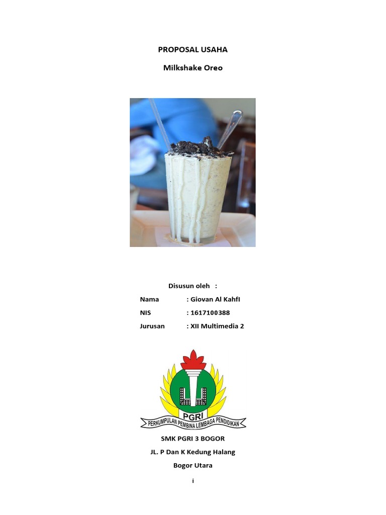 Proposal Usaha Milkshake Oreo: Disusun Oleh: Nama: Giovan Al Kahfi Nis: 1617100388 Jurusan: Xii Multimedia 2