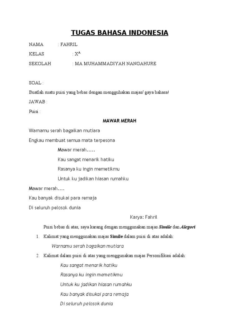 Tugas Bahasa Indonesia Puisi Tentang Majas