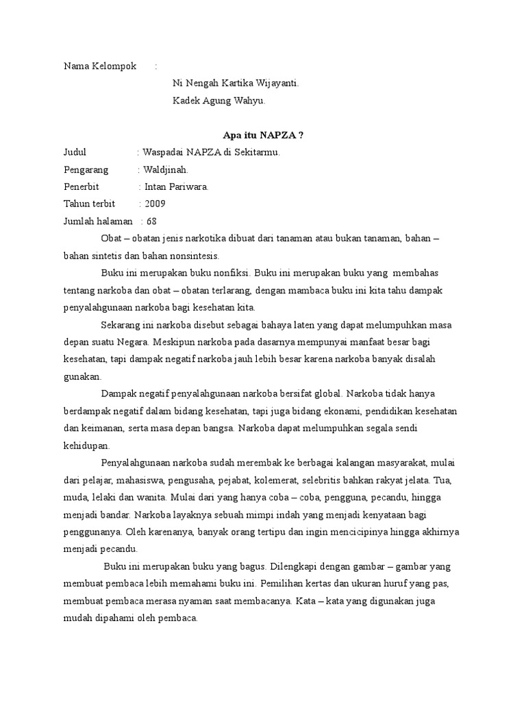 DOC) LAPORAN RESENSI BUKU BAHAYA NARKOBA | Glaniz Izza - Academia.edu