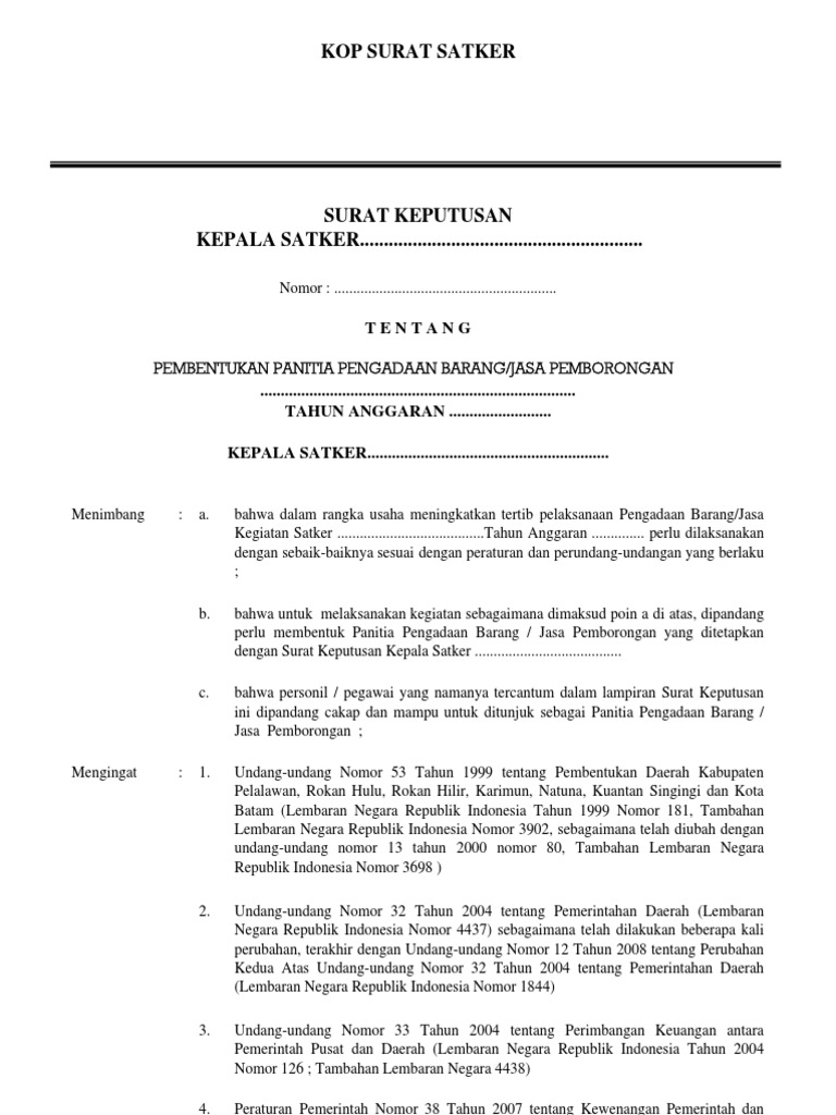 Contoh Rancangan Surat Keputusan tentang Pembentukan Tim …