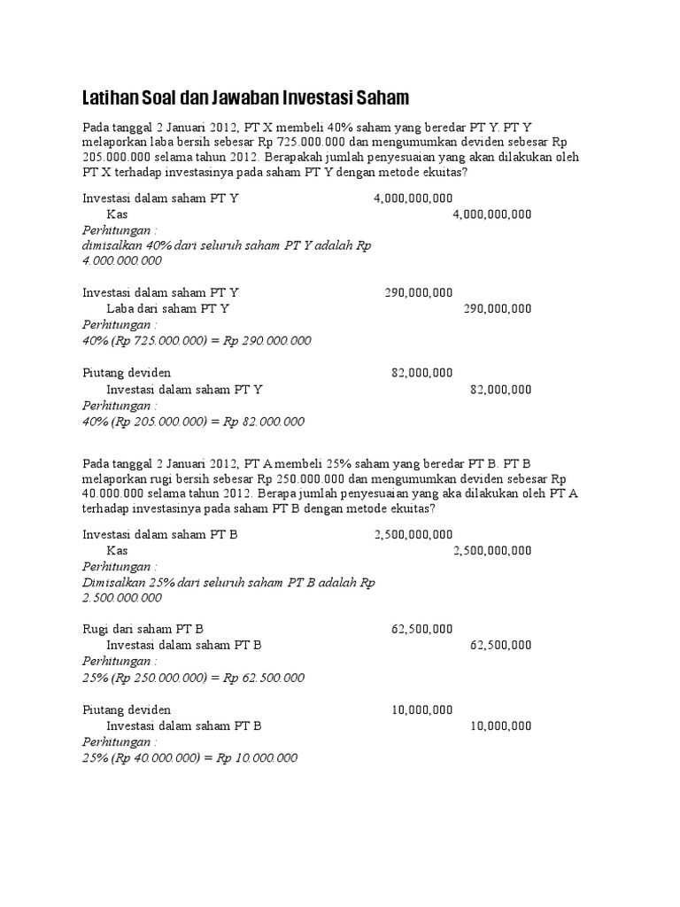 Latihan Soal Dan Jawaban Investasi Saham